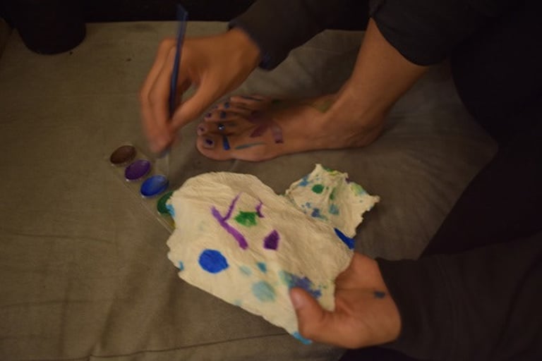 Participants explored visual re-framing of personal stories through the use of variety of visual media. The following methods have been used during the processes: grounding exercises, meditations, creative writing, group sharing, individual sharing, and creative work with art supplies.