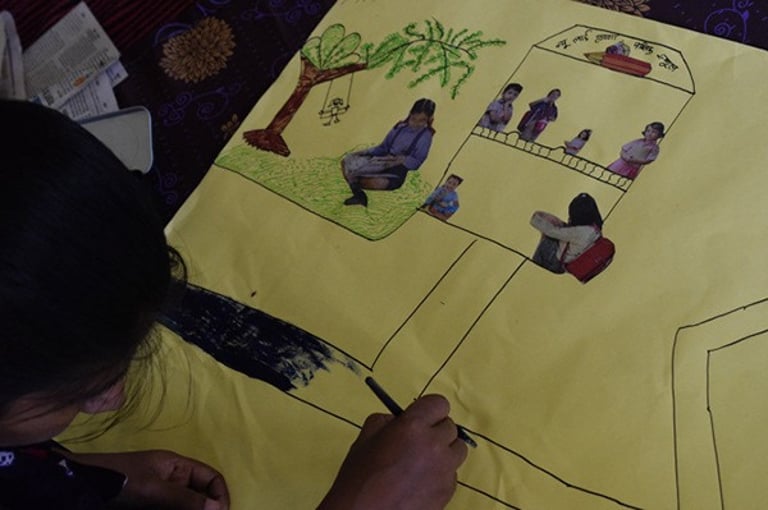 During creative processes, participants explored various visual tools from video, to paintings and collages while narrating their personal experiences.