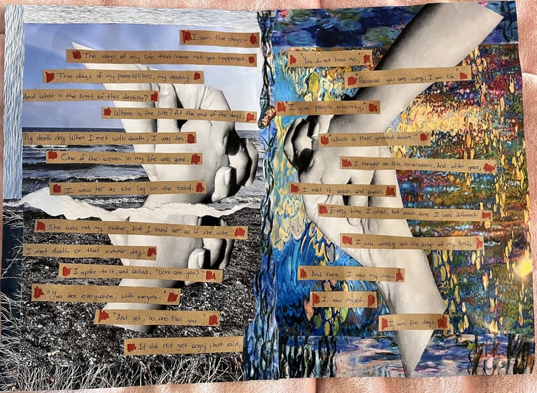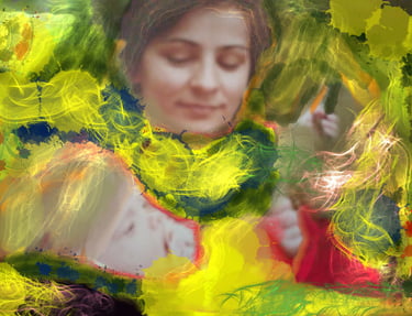In recent years, the theme of family has become central to my work, growing stronger with each move across countries and through different chapters of my life. The distance—both physical and emotional—has made me reflect more deeply on what family means, especially after the loss of my mother. Grief has taken many forms: from numbness to sadness, from anger to rage. I have come to realize that I lost my family as it once was. This collage features one of the few rare photos of us together, taken shortly after the war. I layered it with personal fabrics, papers, and textures to express not only the visible but also the invisible threads that bind memory, loss, and identity. Through this piece, I try to make sense of the disconnection, and to honor what remains.
