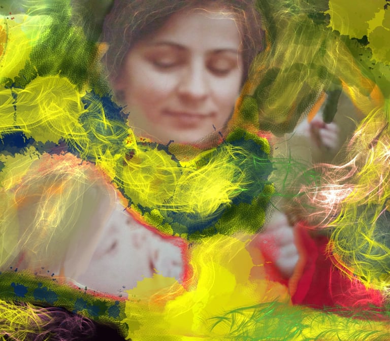 This is one of my most cherished and loving photographs of my mother holding me. I know the story well—how deeply she longed to have a child, how long and painful my birth was. This photo is more than an image; it is a tribute to her tenderness, her open heart, and her unwavering love.